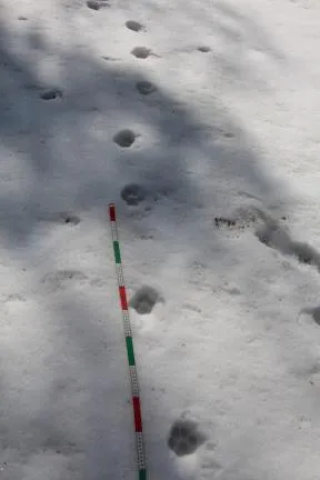 Mesure du pas sur une piste caractéristique de lynx (JY Ployer)